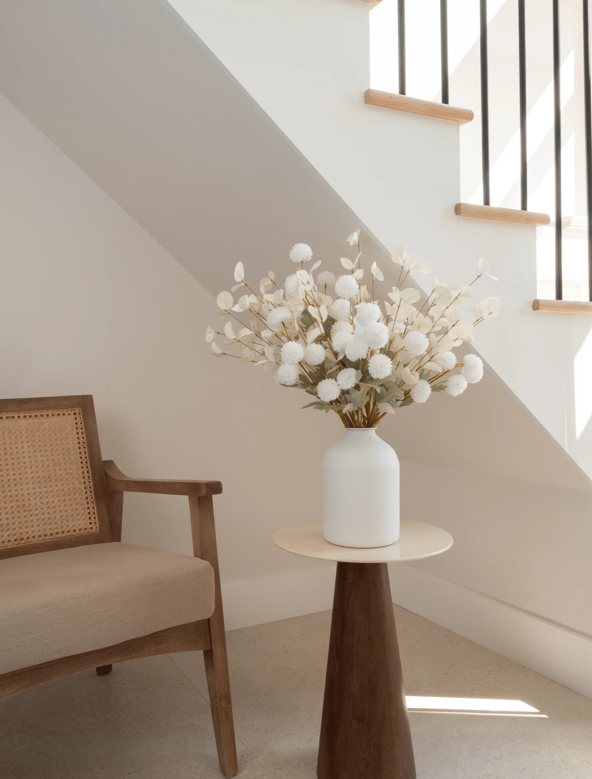 A rustic yet modern vase in a stunning textured stone white finish. This vase is perfect for our Faux Hydrangea.