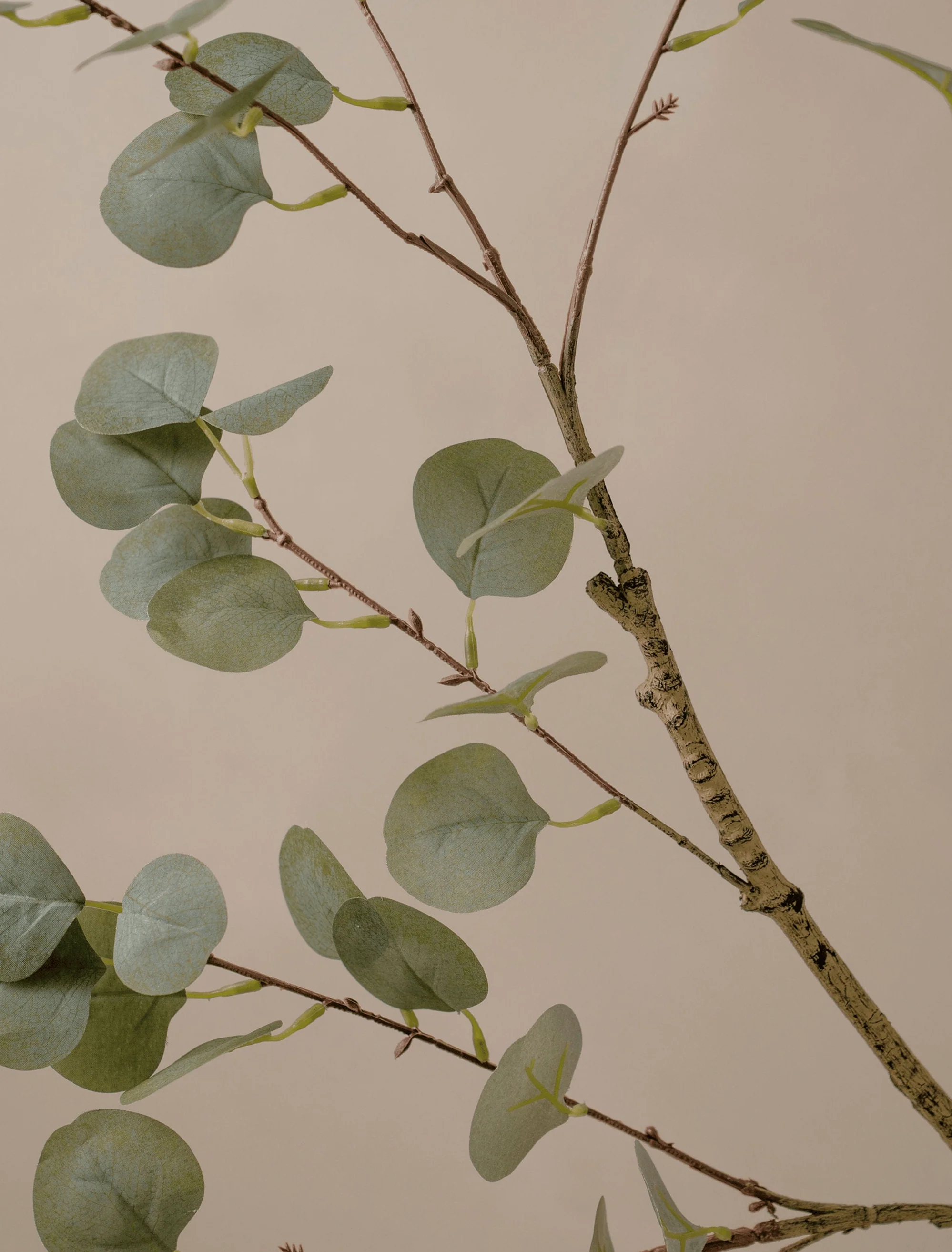 A pair of oversized eucalyptus branches designed to bring natural height and presence to your interior. With thick stems and softly shaped leaves, these statement pieces create a relaxed, Mediterranean-inspired look while adding texture and scale to larger spaces.